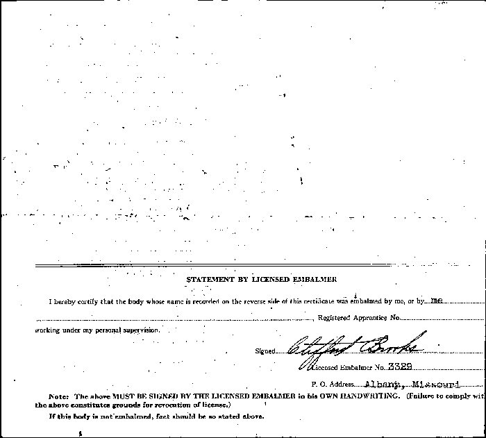 Buried: March 29, 1941 in Green Ridge Cemetery, Gentry, Gentry County, Missouri.