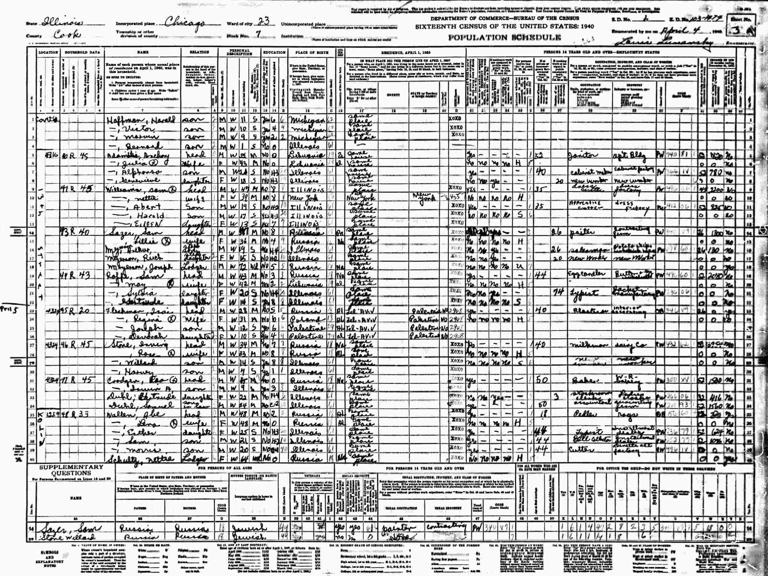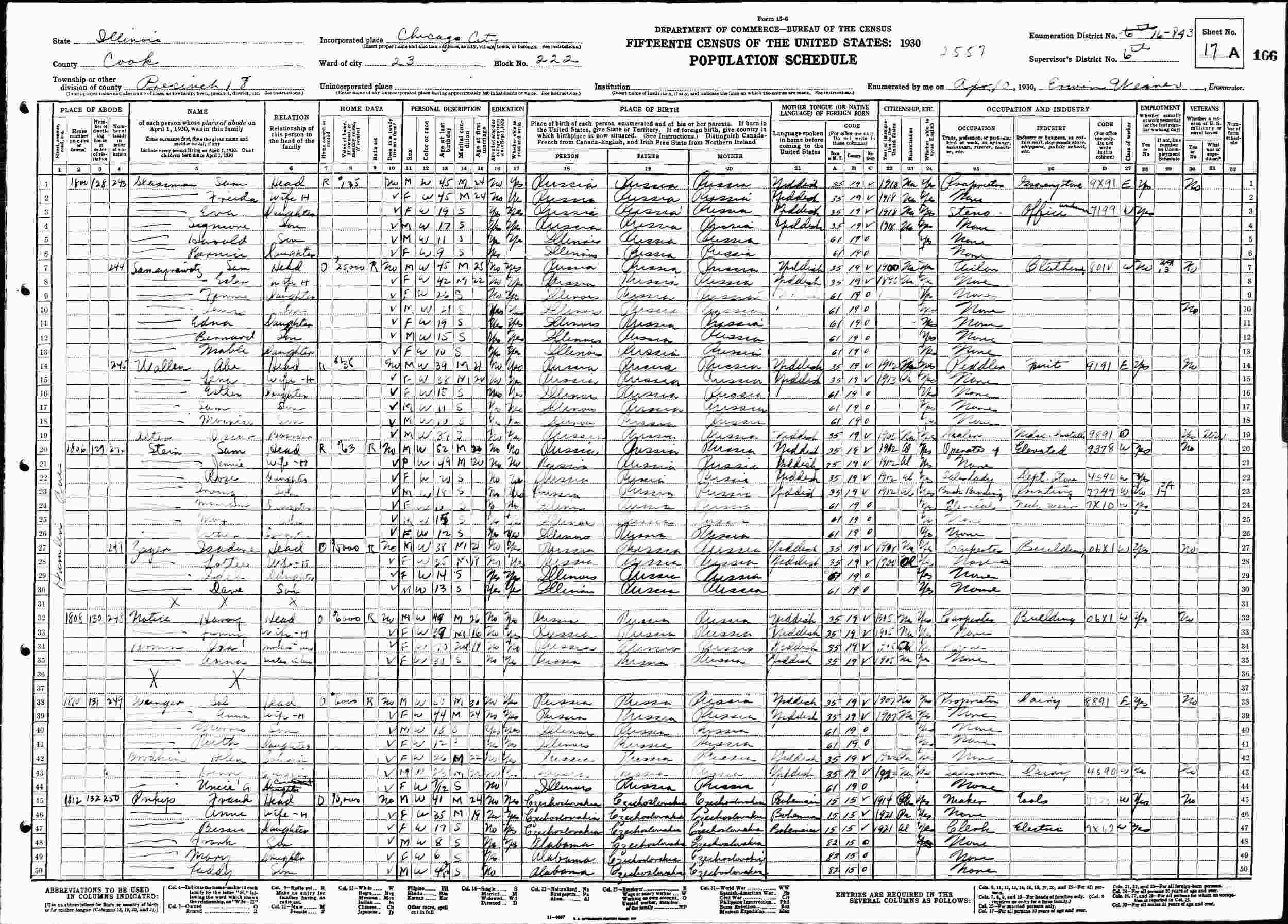April 10, 1930 - 1800 Hamlin Avenue, Precinct 18, Ward 23, Block 222, Supervisor's District 6, Enumeration District 16-843, Chicago, Cook County, Illinois.