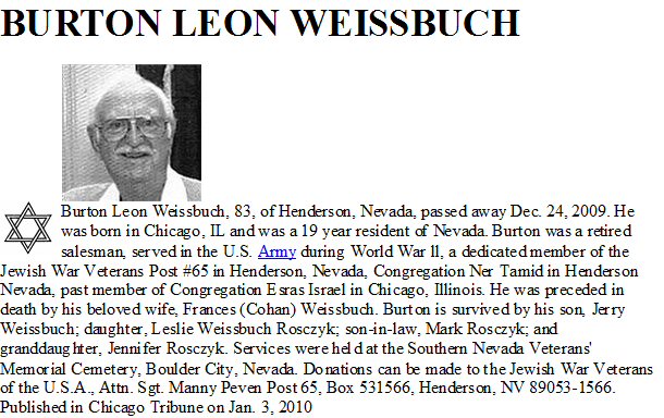 Notes for BURTON "BURT" LEON WEISSBUCH: