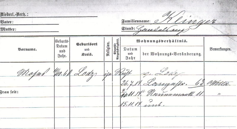 Son of Nuchem and Sura Rywka " Rojza" (Goldsztajn) Klinger.