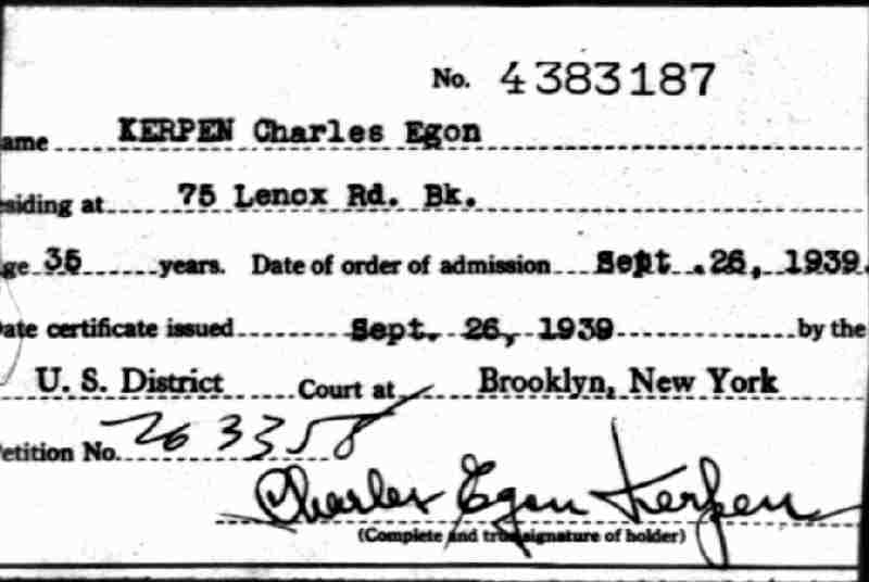Naturalization: September 26, 1939 - Eastern District of New York, New York City, New York.