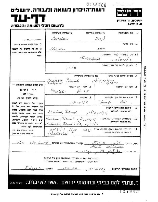 Married: Jozef Landau 1895 in Unknown (probably Krakow, Poland).