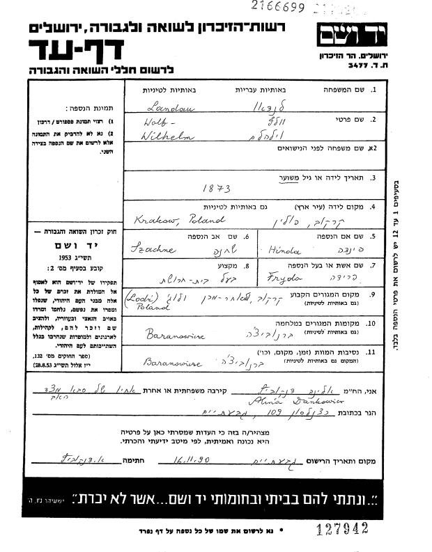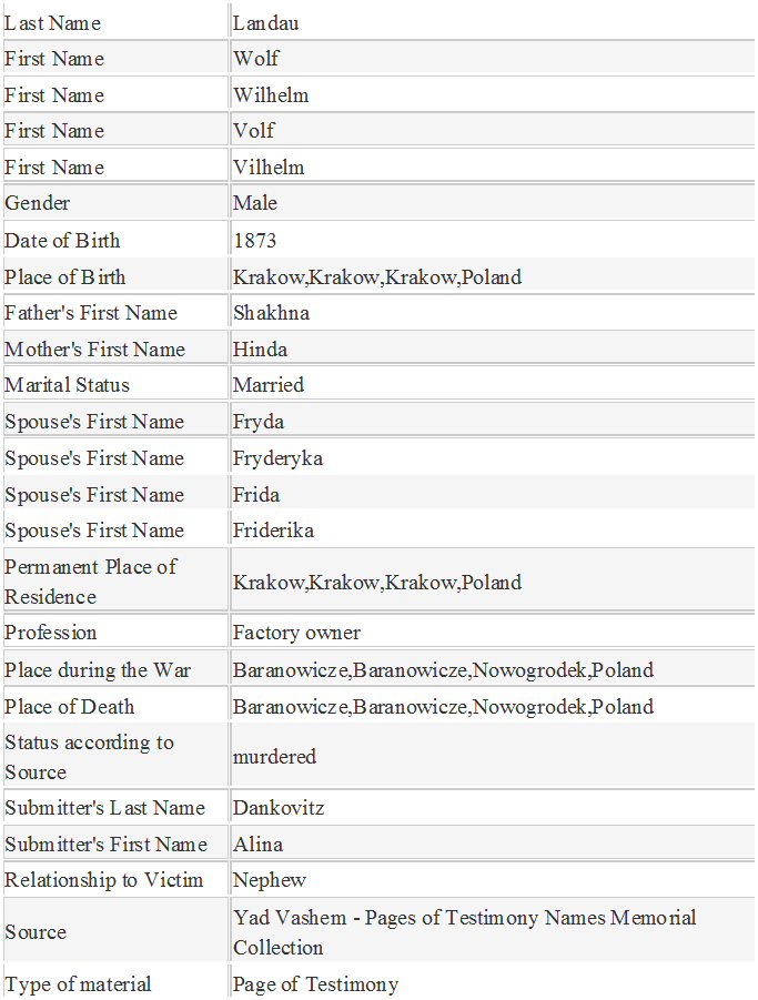 Married: Fryda/Fryderyka Shakht in 1897 in Krakow, Poland.
