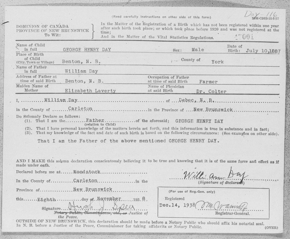 Born: July 10, 1887 in Benton, York, New Brunswick, Canada.