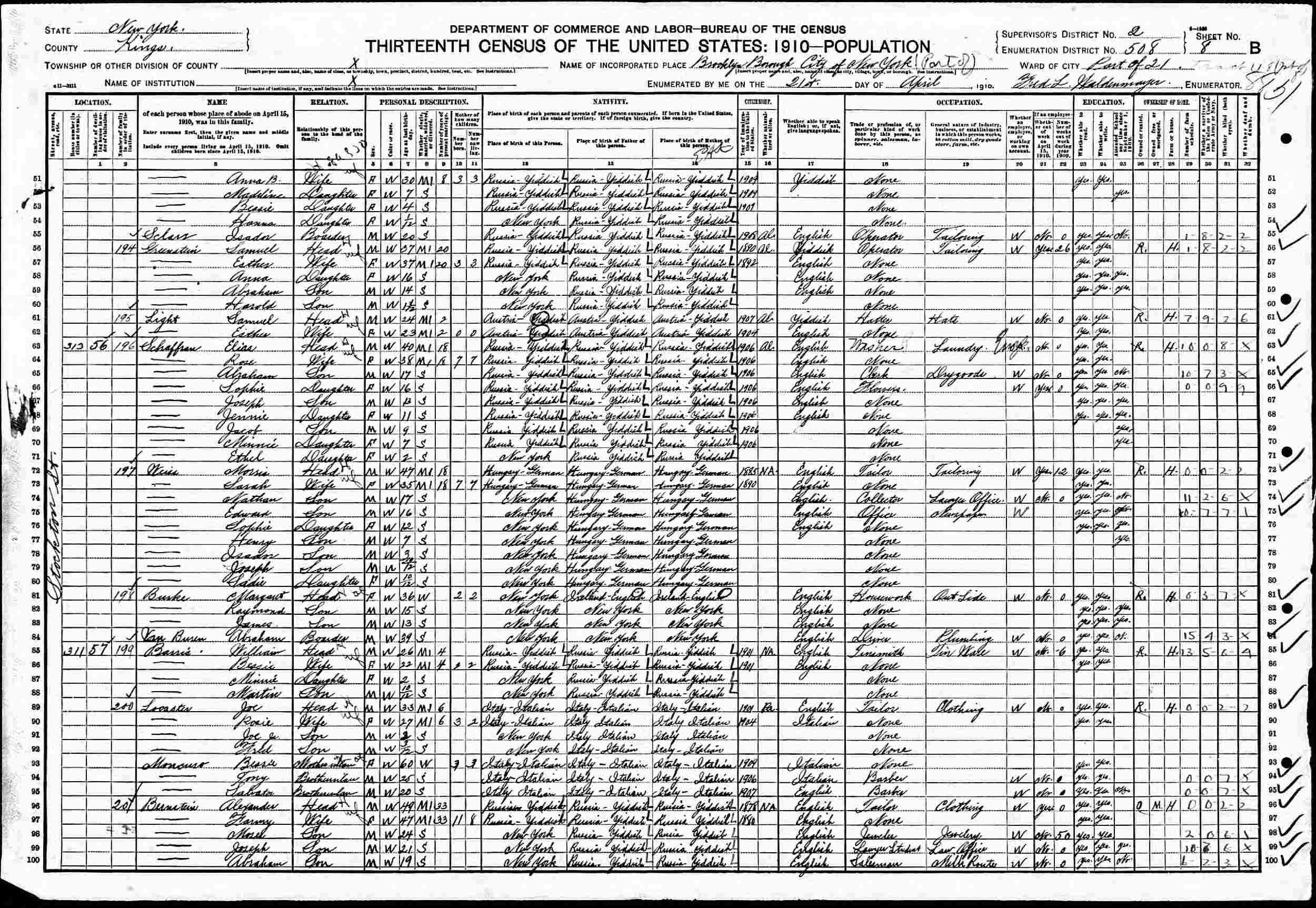 April 21, 1910 - 311 Stockton Street, Ward 21, Supervisor's District 2, Enumeration District 508, Brooklyn, Kings County, New York.