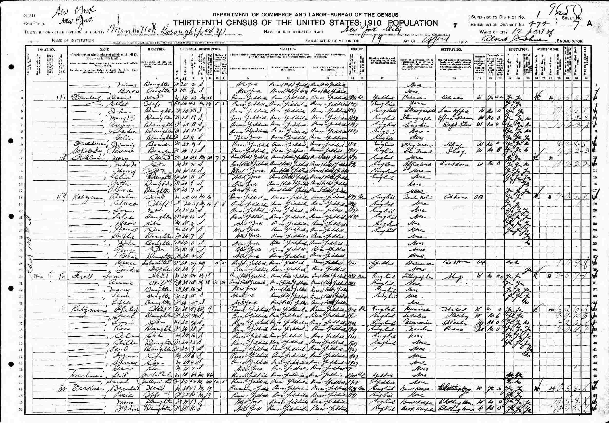 April 19, 1910 - 7576 East 100th Street, Ward 12, Supervisor's District 1, Enumeration District 474, Manhattan, New York.
