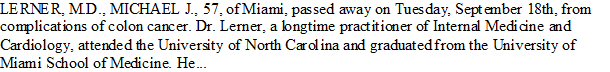 Notes for MICHAEL J LERNER, DR. :