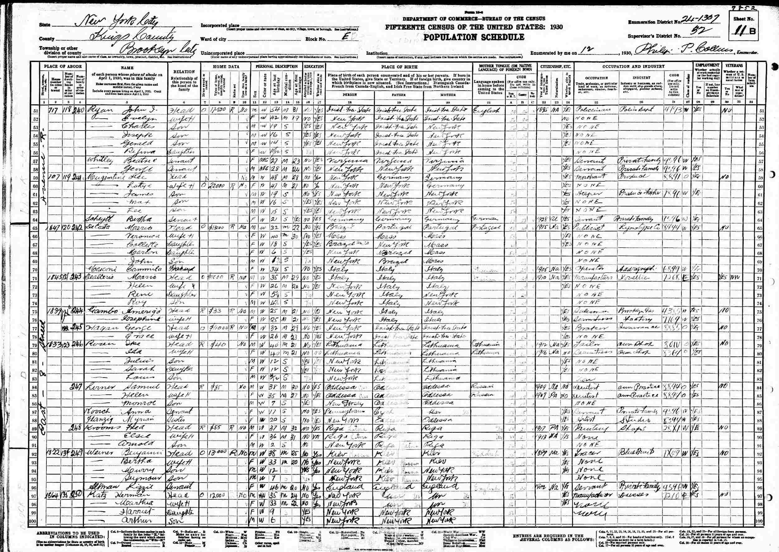 1930 - 1833 East 8th Street, Block E, Supervisor's District 32, Enumeration District 24-1307 Brooklyn, Kings County New York.