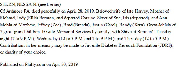 Died: April 28, 2019 in Ardmore, Delaware County, Pennsylvania.