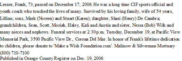 Died: December 17, 2006 in Orange, Orange County, California.