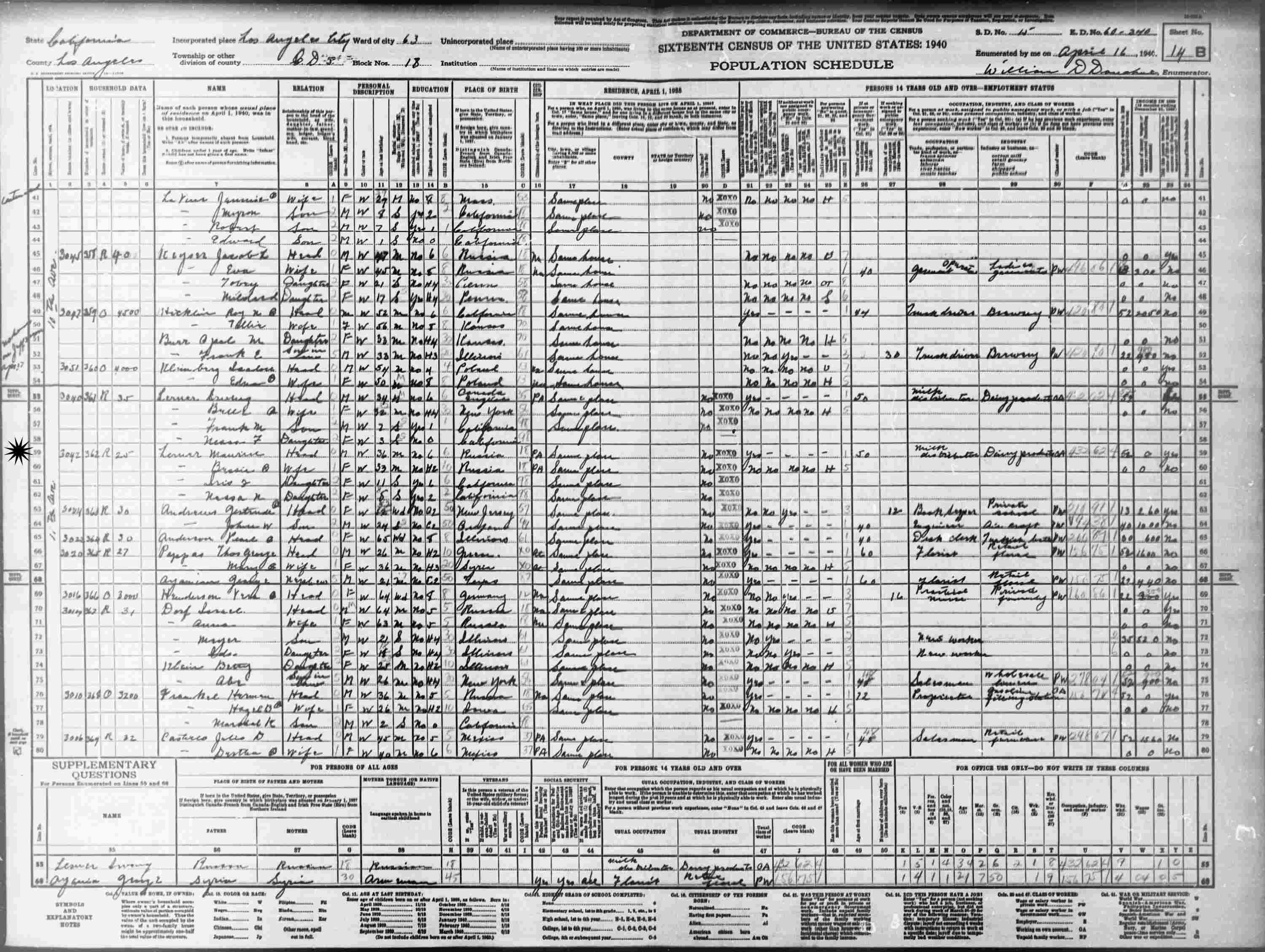 April 16, 1940 - 3042 11th Avenue, Councilmanic District 5, Los Angeles, Los Angeles County, California.