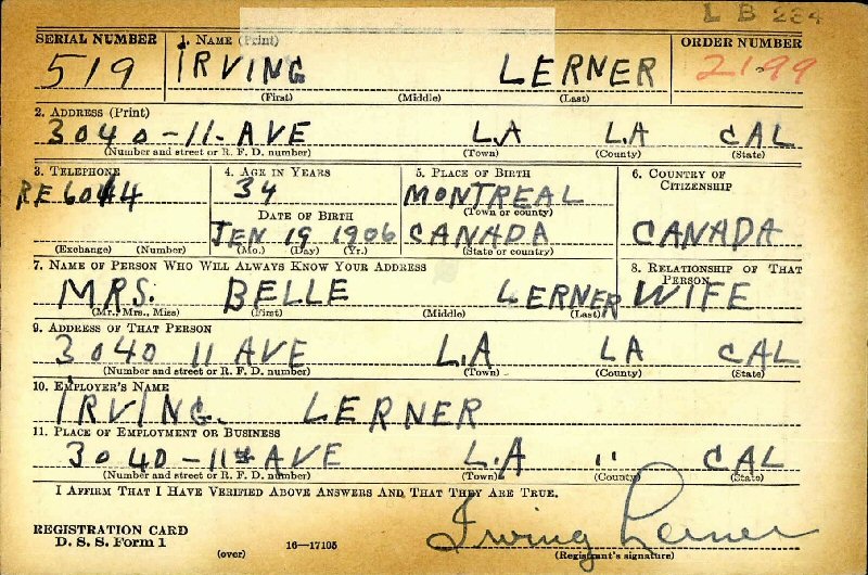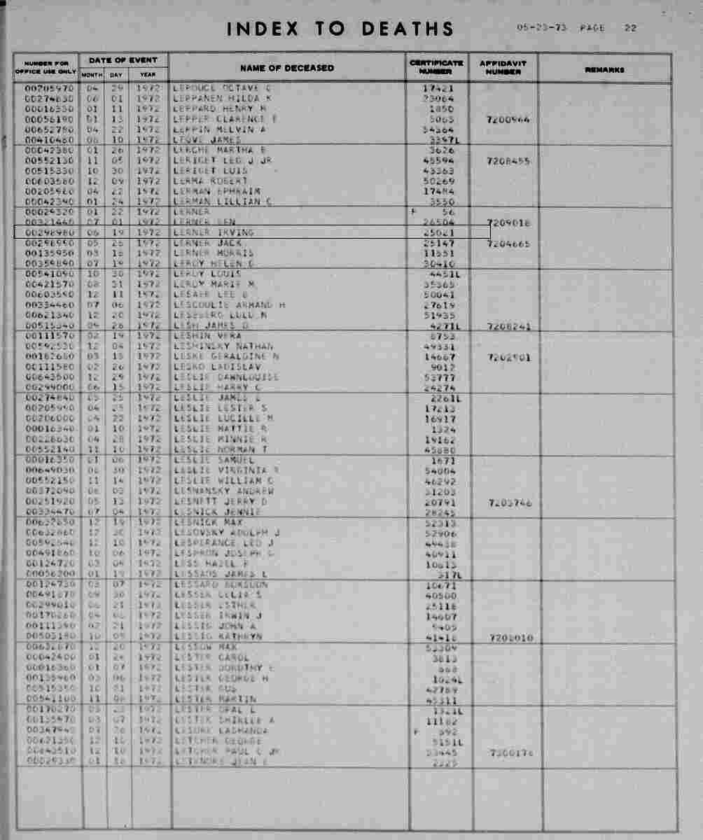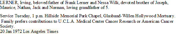 Notes for IRVING (ISRAEL) "IRV" LERNER: