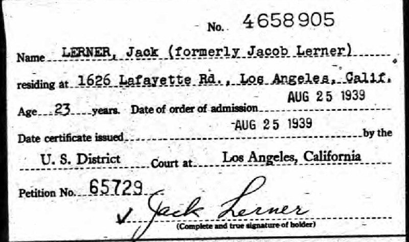 Name Changes: May 29, 1939 - Jacob Lerner to Jack Lerner.