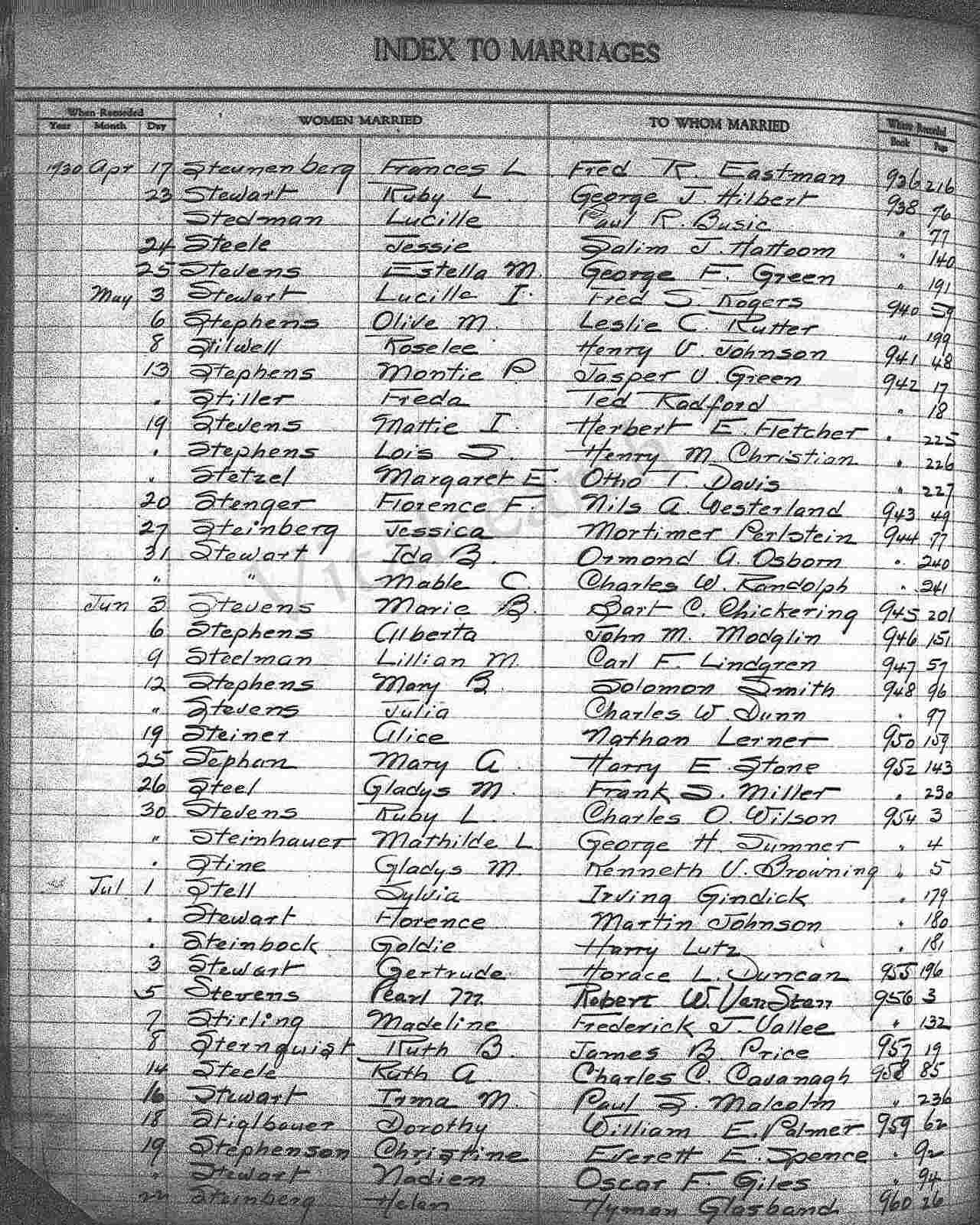 Married: Alice Elizabeth Steiner June 7, 1930 in Los Angeles, Los Angeles County, California.