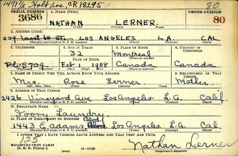 Notes for NATHAN "NAT" LERNER: