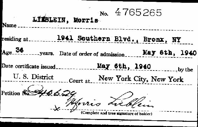 Petition For Naturalization: December 12, 1939 - Southern District Court of New York.