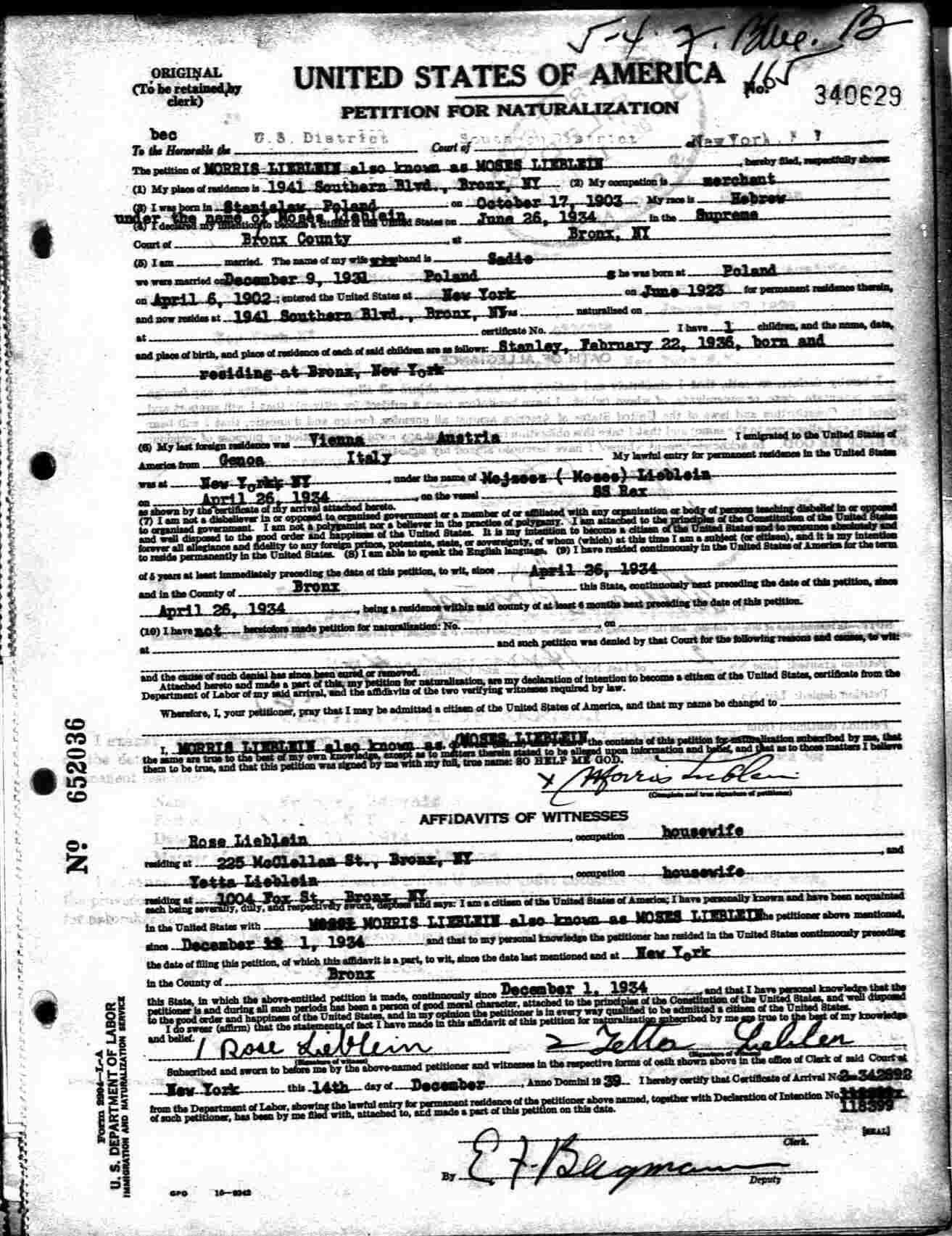 Notes for MORRIS "MOSES/MOJZESZ" LIEBLEIN: