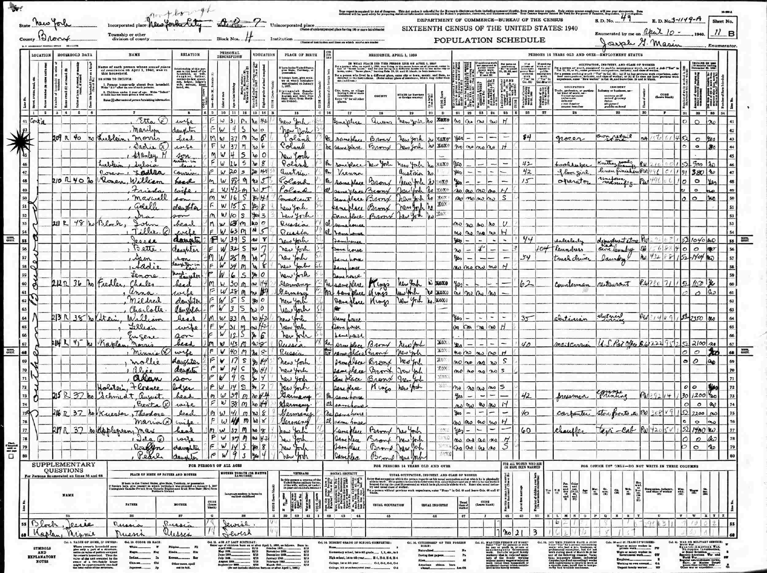 April 10, 1940 - 1941 Southern Boulevard, Block H, Supervisor's District 49, Enumeration District 3-1149-A, Bronx, New York.