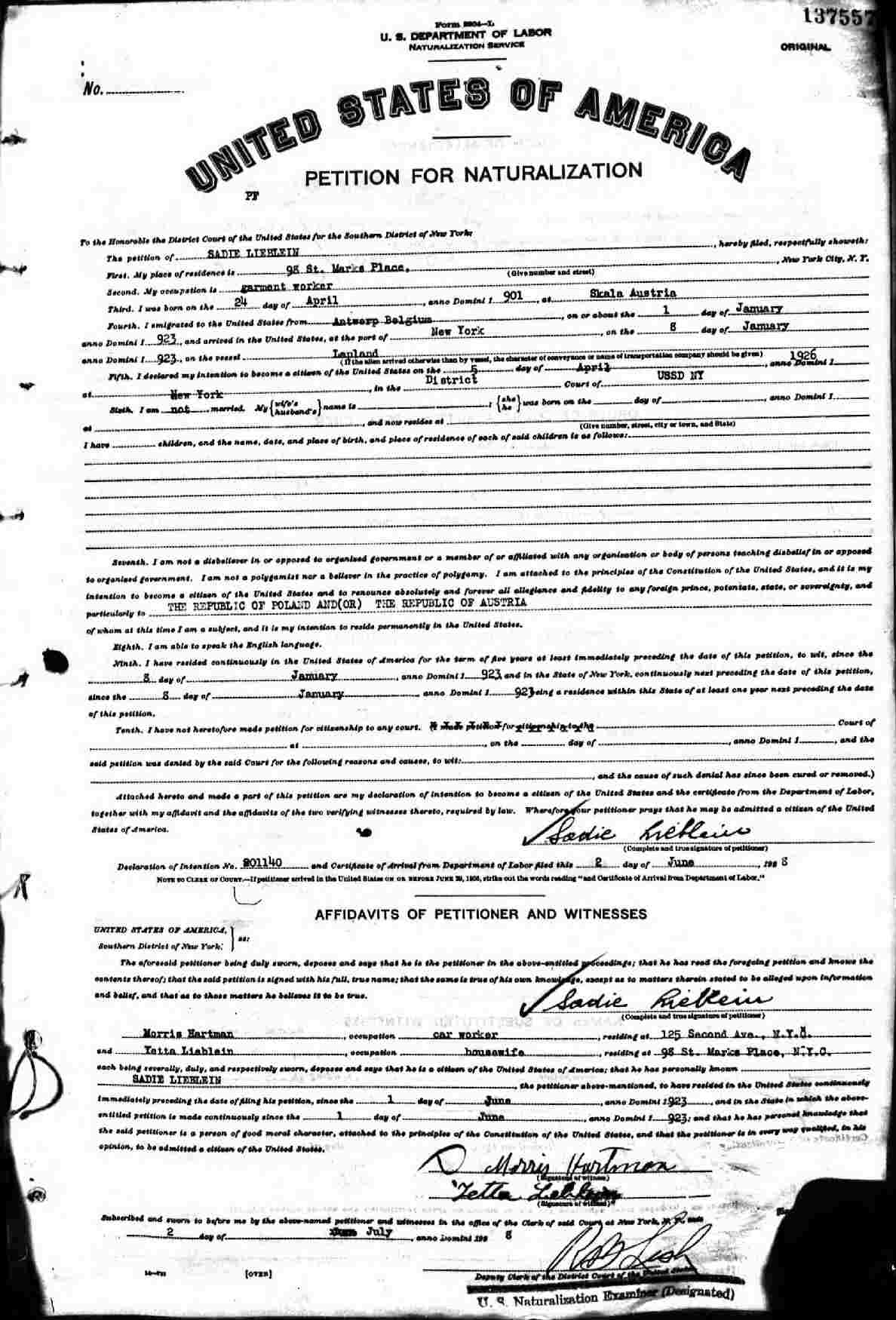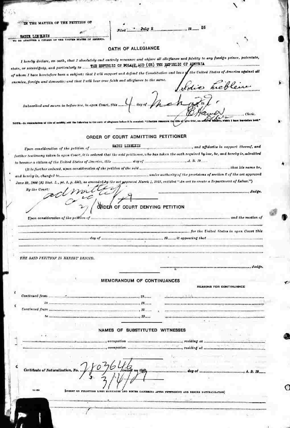 Married: Morris "Moses/Mojzesz" Lieblein December 9, 1931 in Poland.