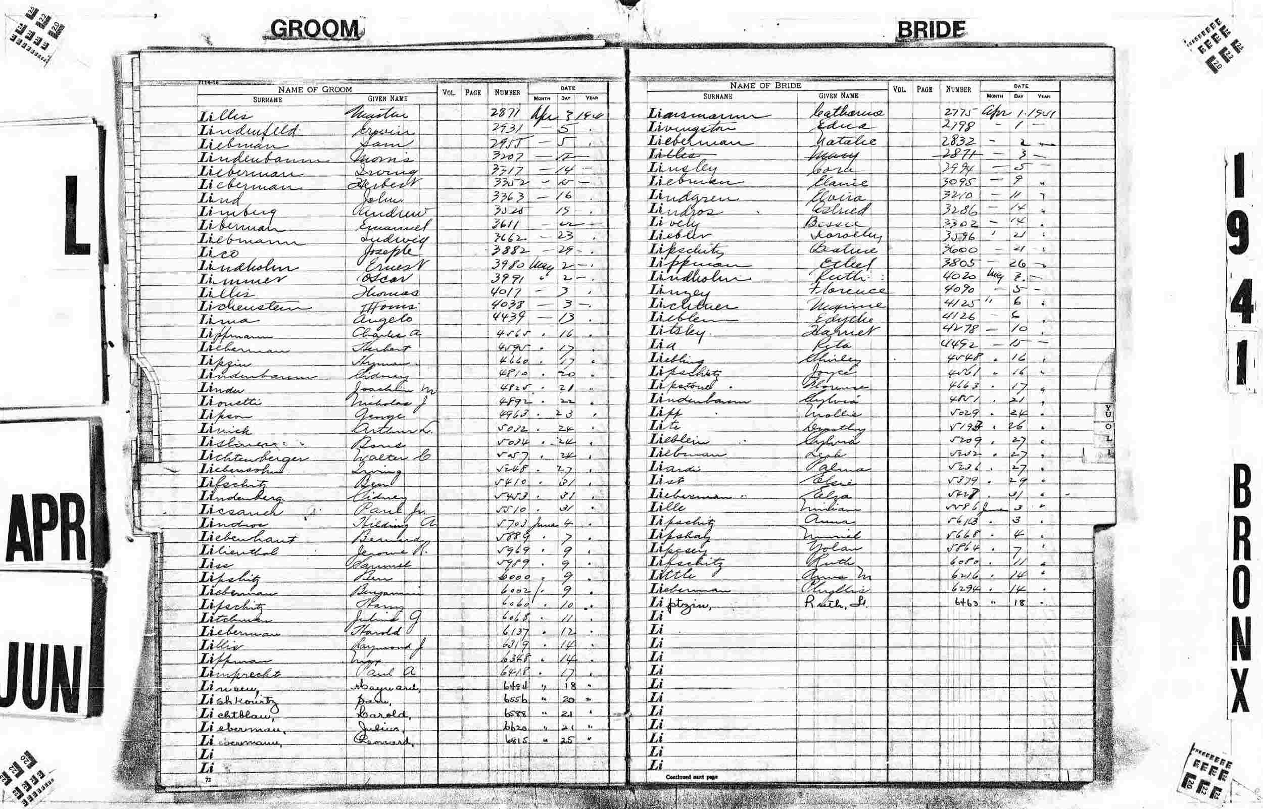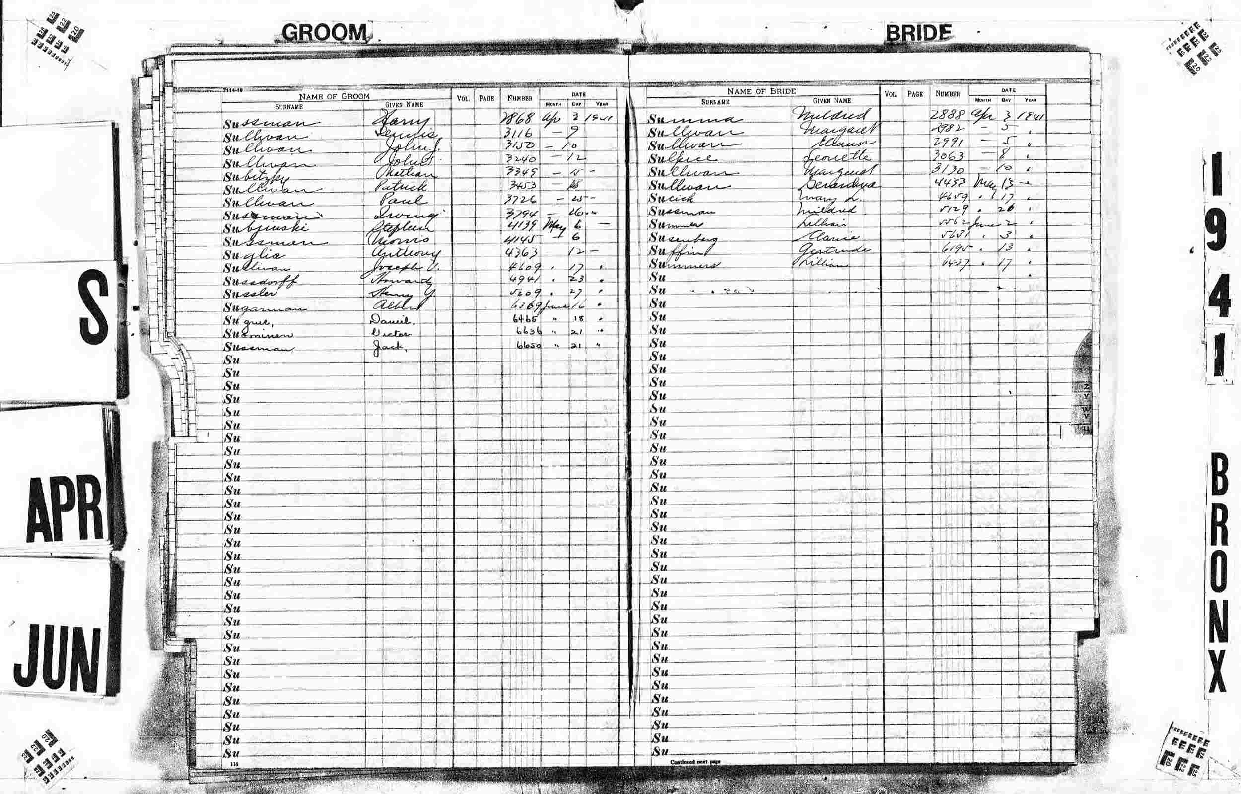 Married: Henry G Sussler Abt. May 27, 1941 in Bronx, New York.