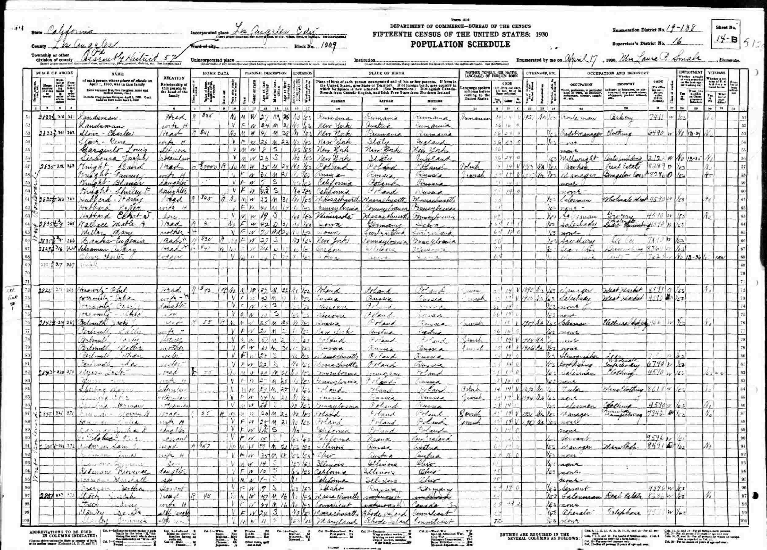 April 17, 1930 - 2735 1/2 West Boulevard, Assembly District 57, Block 1009, Supervisor's District 16, Enumeration District 19-138, Los Angeles, Los Angeles County, California.