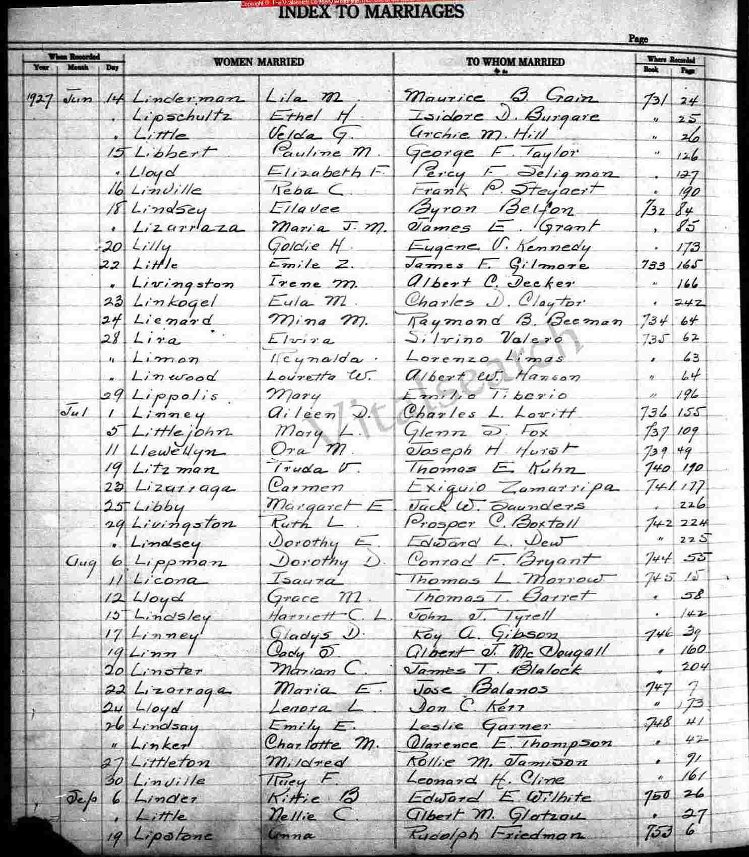 Married: Ethel "Etta" H Lipschultz about June 14, 1927 in Los Angeles County, California. (Marriage Registered: June 14, 1927, Book 731, Page 25.)