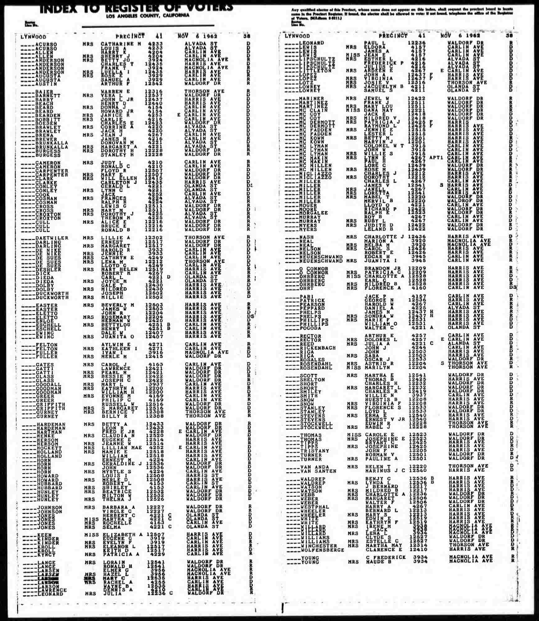 1960-1962 - 4216 Alvada Street, Los Angeles, Los Angeles County, California.