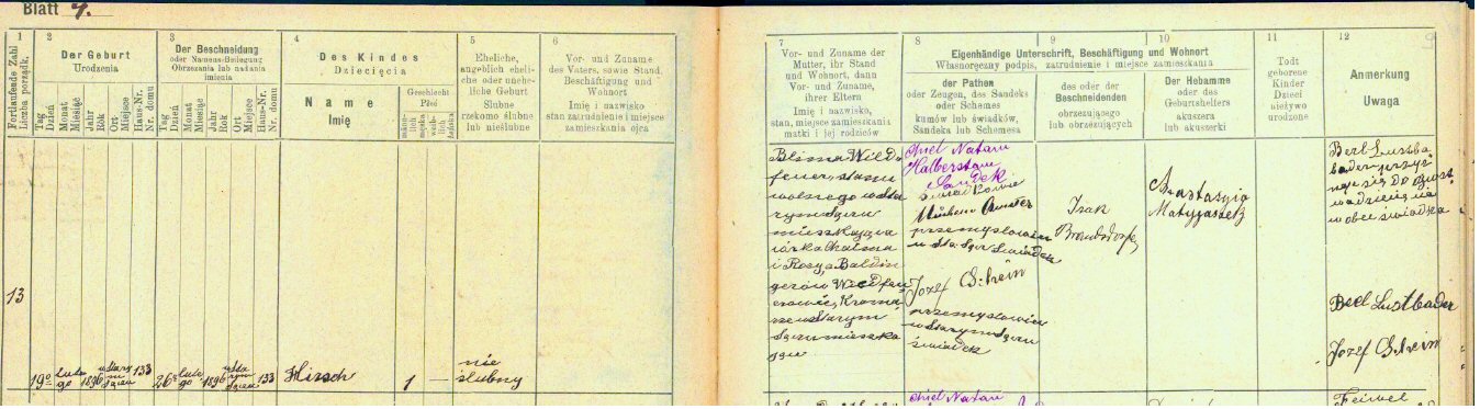 Bris: February 26, 1896 Stary Sacz, Poland.