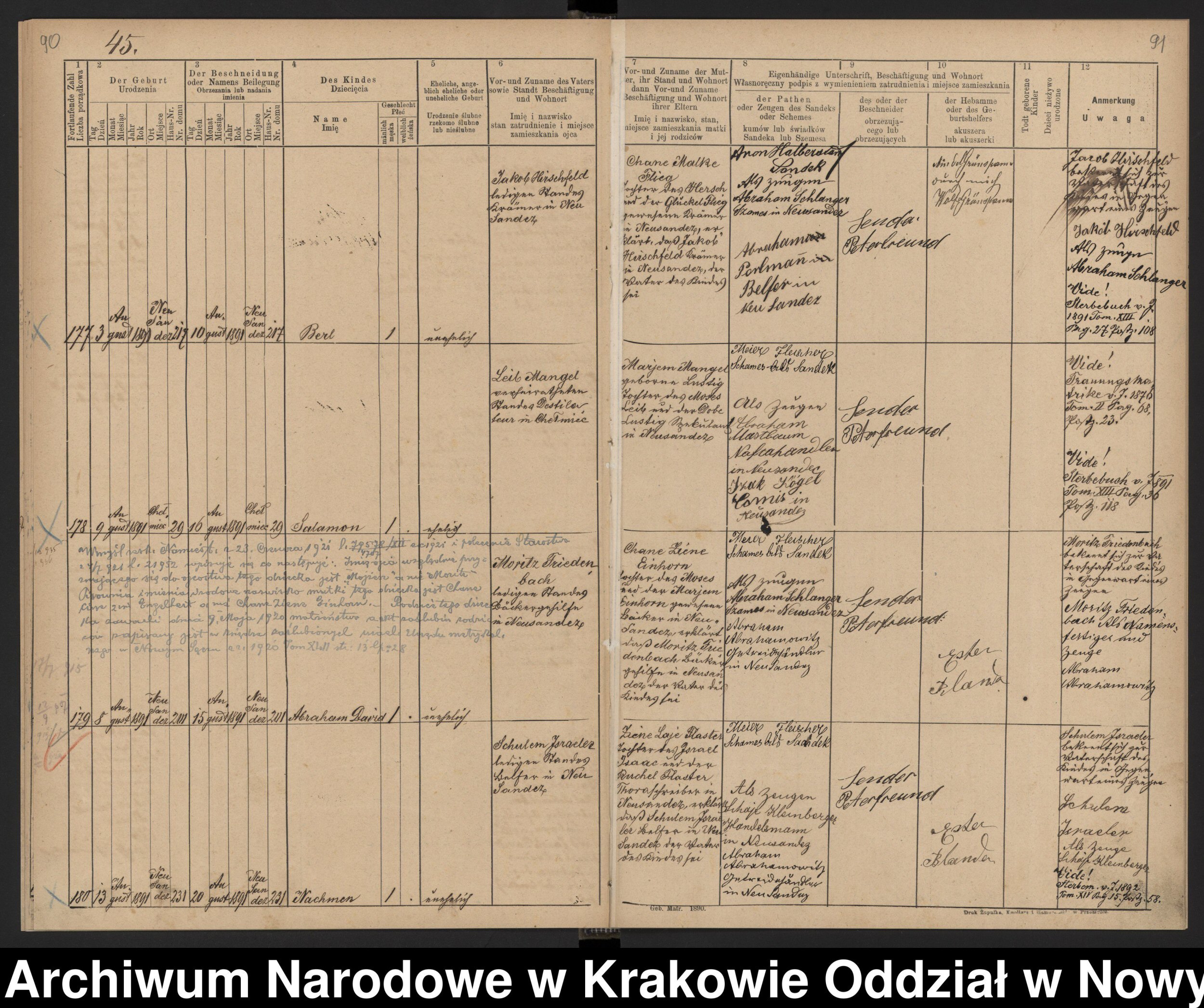 Notes for SALOMON MANGEL: Son of Leib and Marjem (Lustig) Mangel. Born: August 9, 1891 in Cholmiec, Poland. Bris: August 16, 1891 in Cholmiec, Poland. Died: Unknown in Unknown.