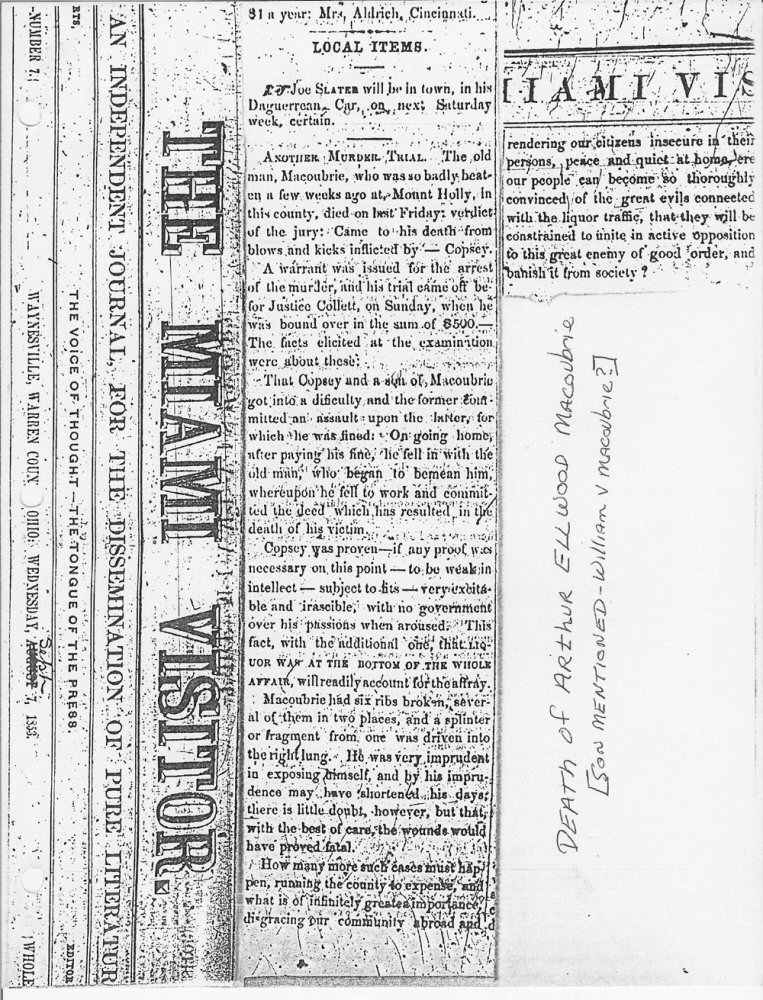 Died: September 2, 1853 in Mt. Holly, Warren County, Ohio.