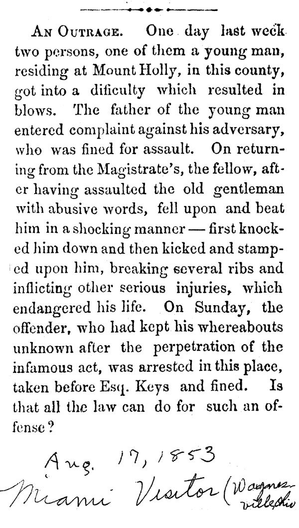 Census: 1850 - Mt. Holly, Warren County, Ohio.