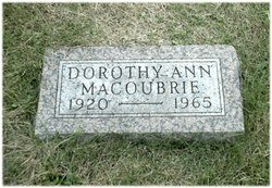 Notes for DOROTHY ANN GOUGH MACOUBRIE: Daughter of ? and ?. Born: 1920 in Unknown. Died: 1965 in Unknown. Buried: Gilead Cemetery, Norborne, Carroll County, Missouri. Married: Arthur Kenneth Macoubrie Unknown in Unknown.