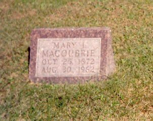 Notes for MARY I VALE MACOUBRIE: Daughter of ? and ?. Born: October 25, 1872 in Unknown. Died: August 30, 1962 in Unknown. Buried: Gilead Cemetery, Norborne, Carroll County, Missouri. Married: George Franklin Macoubrie 1909 in Unknown.