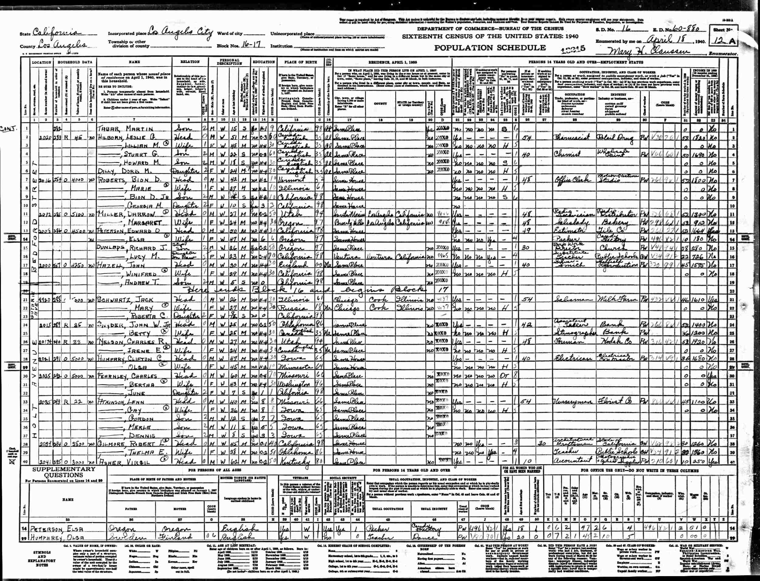April 18, 1940 - 2015 Holt Avenue, Blocks 16-17, Supervisor's District 16, Enumeration District 60-880, Los Angeles, Los Angeles County, California.