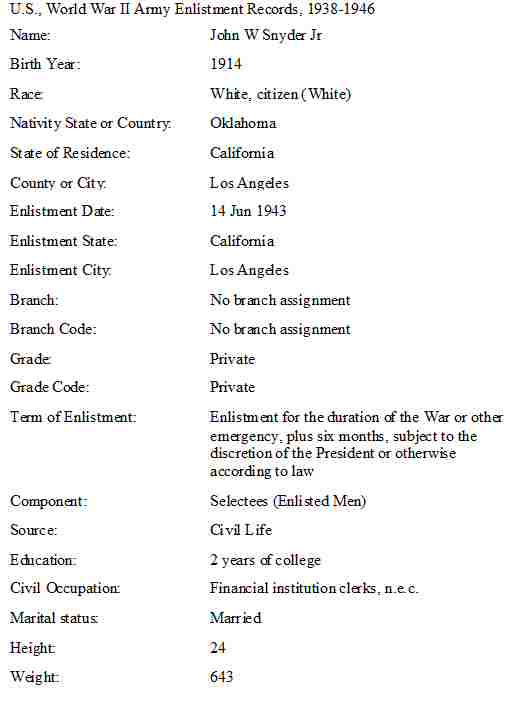 June 14, 1943 - WWII Army Enlistment - Los Angeles, Los Angeles County, California.