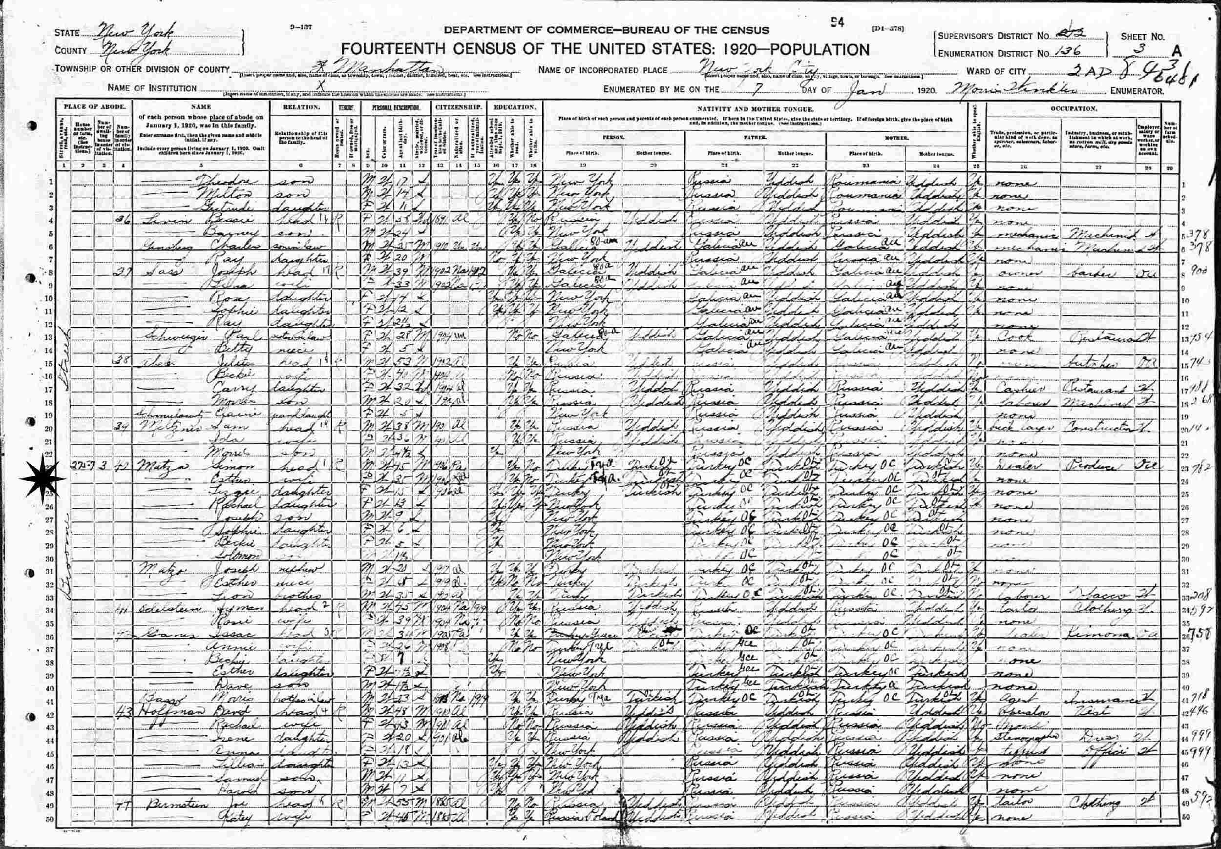 January 7, 1920 - 275 Broome Street, Assembly District 2, Supervisor's District 1, Enumeration District 136, Manhattan, New York.
