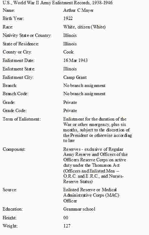 Military Service: July 29, 1942-September 19, 1945 - Army.