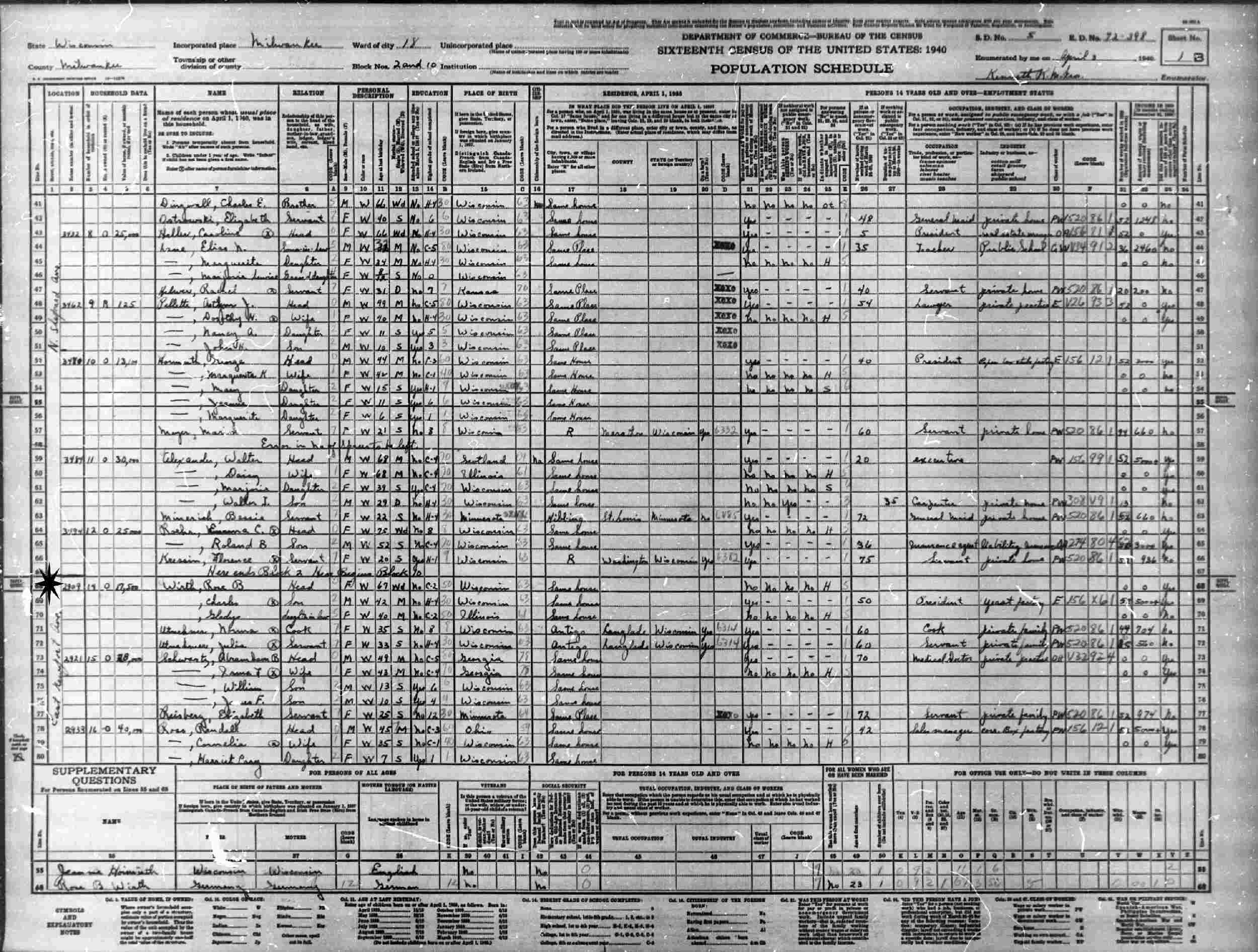 April 3, 1940 - 2909 East Newport Avenue, Block 2 and 10, Ward 18, Supervisor's District 5, Enumeration District 72-398, Milwaukee, Milwaukee County, Wisconsin.