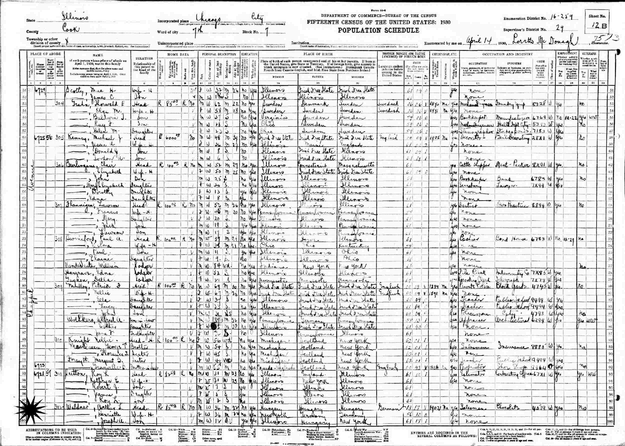 April 15, 1930 - 6721 Chappel Avenue, Ward 7, Block 7, Supervisor's District 29, Enumeration District 16-259, Chicago, Cook County, Illinois.