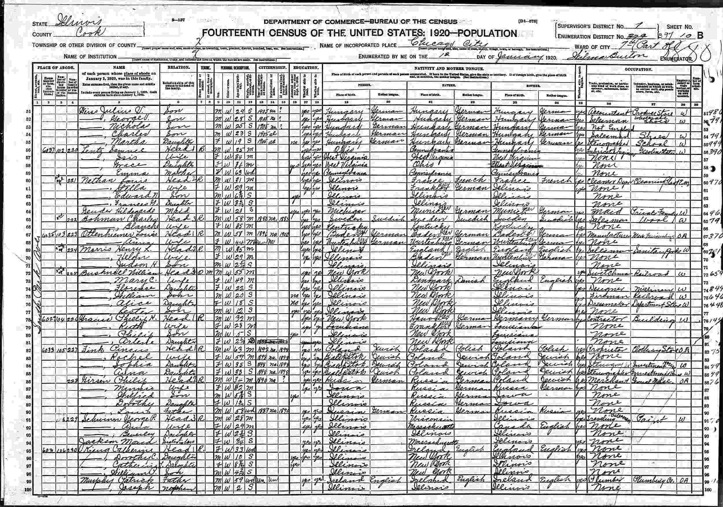 January 12, 1920 - 6037 South Clark Avenue, Ward 7, Supervisor's District 7, Enumeration District 397, Chicago, Cook County, Illinois.