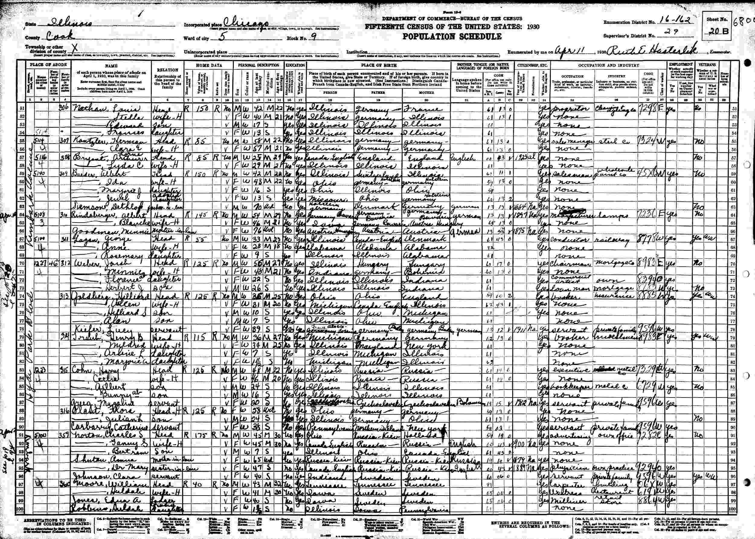 April 11, 1930 - 5114 Kimbark Avenue, Ward 5, Block 9, Supervisor's District 29, Enumeration District 16-162, Chicago, Cook County, Illinois.