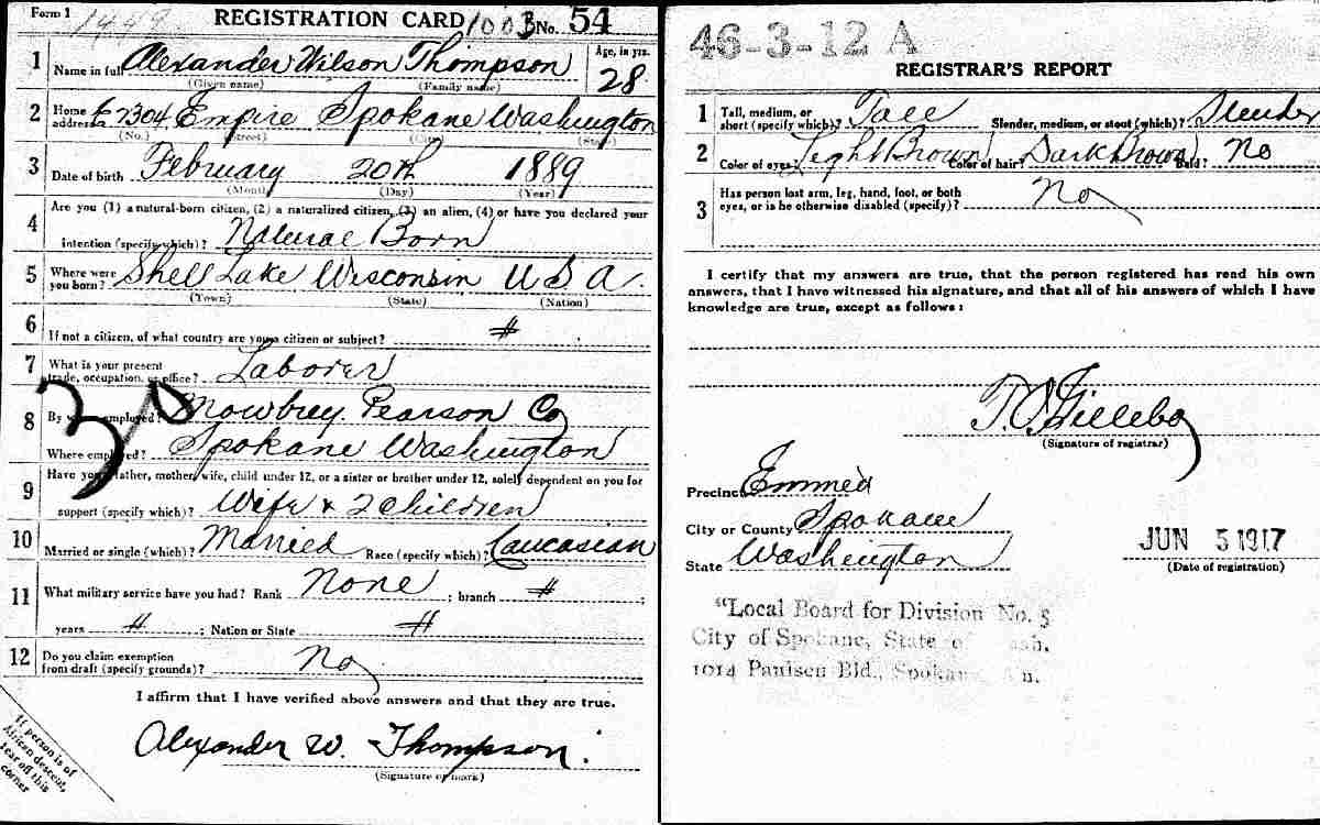 June 5, 1917 - E 7304 Empire, Spokane, Spokane County, Washington.