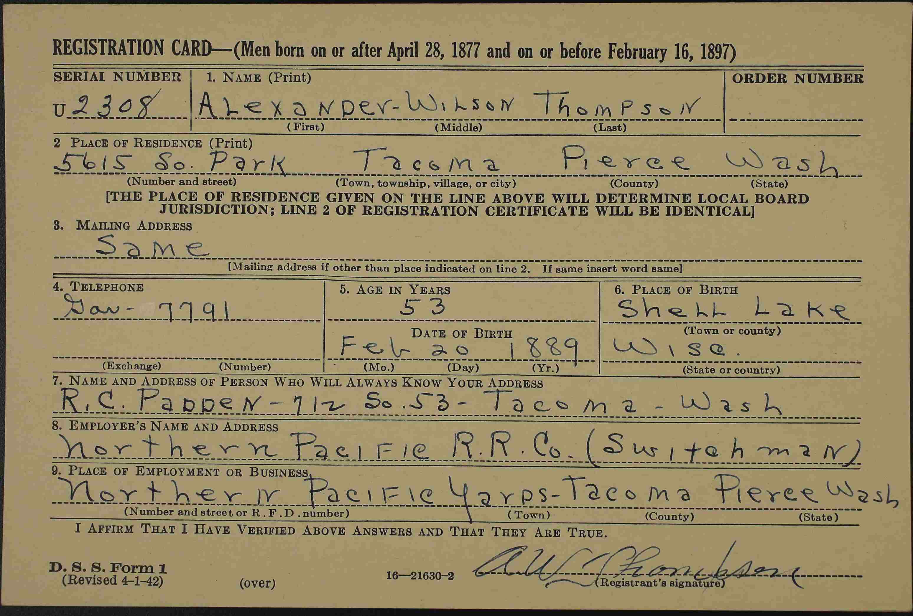Notes for ALEXANDER "ALEX" WILSON THOMPSON: