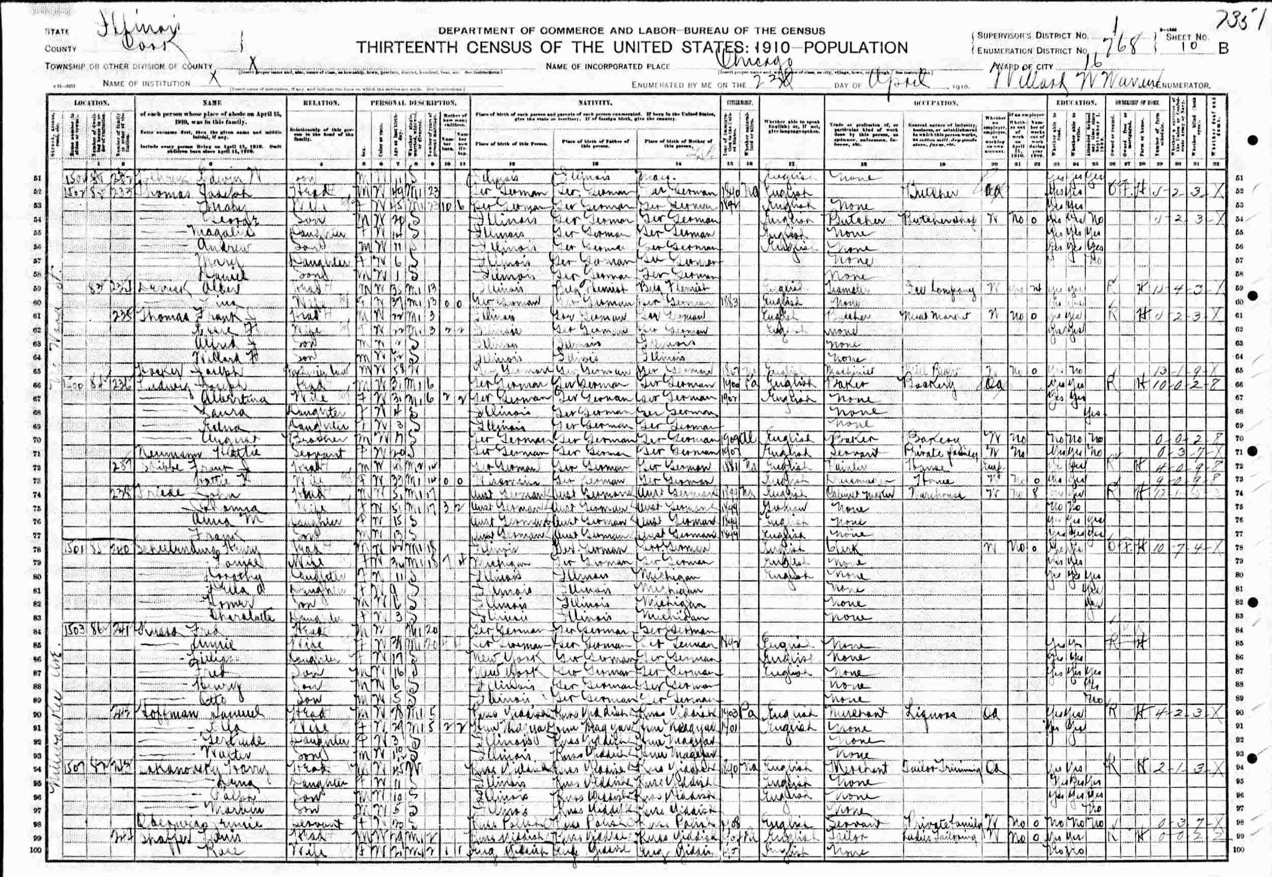 April 23, 1910 - 1502 N Wood Street, Ward 16, Supervisor's District 1, Enumeration District 768, Chicago, Cook County, Illinois.