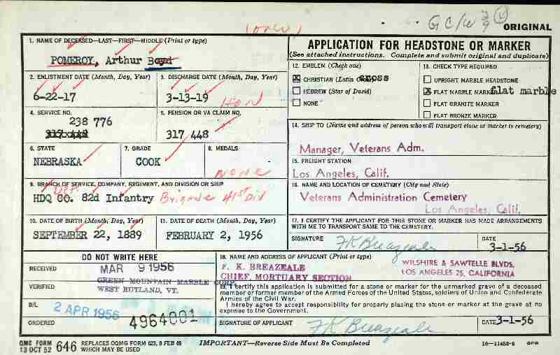 Notes for ARTHUR BOYD POMEROY: