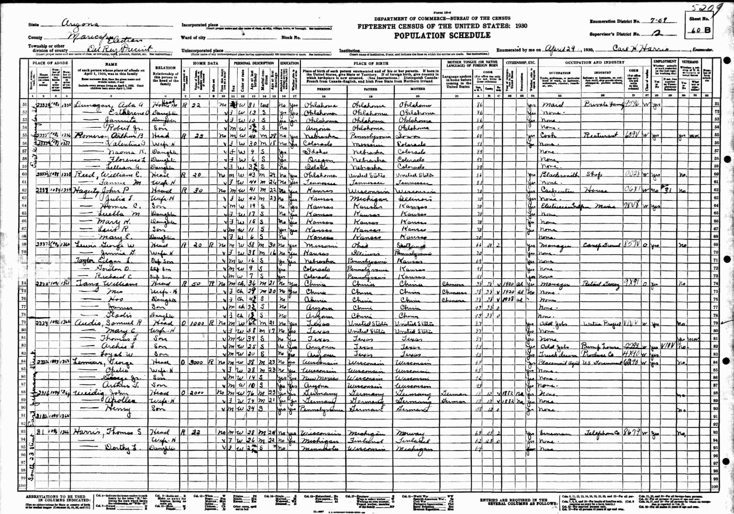 April 29, 1930 - 2333 East Washington Street, Supervisor's District 2, Enumeration District 7-59, Del Rey Precinct, Maricopa County, Arizona.