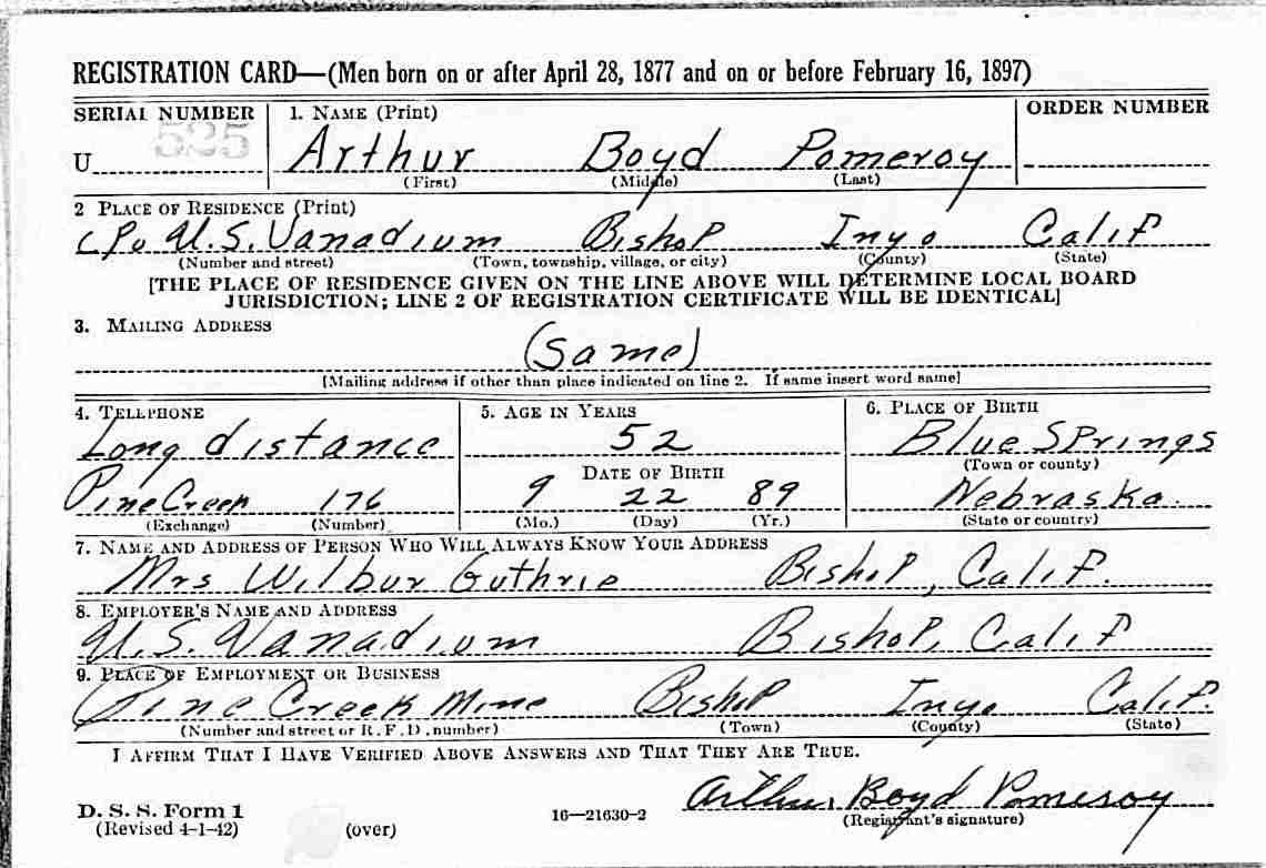 1942 - WWII - Registration Card.
