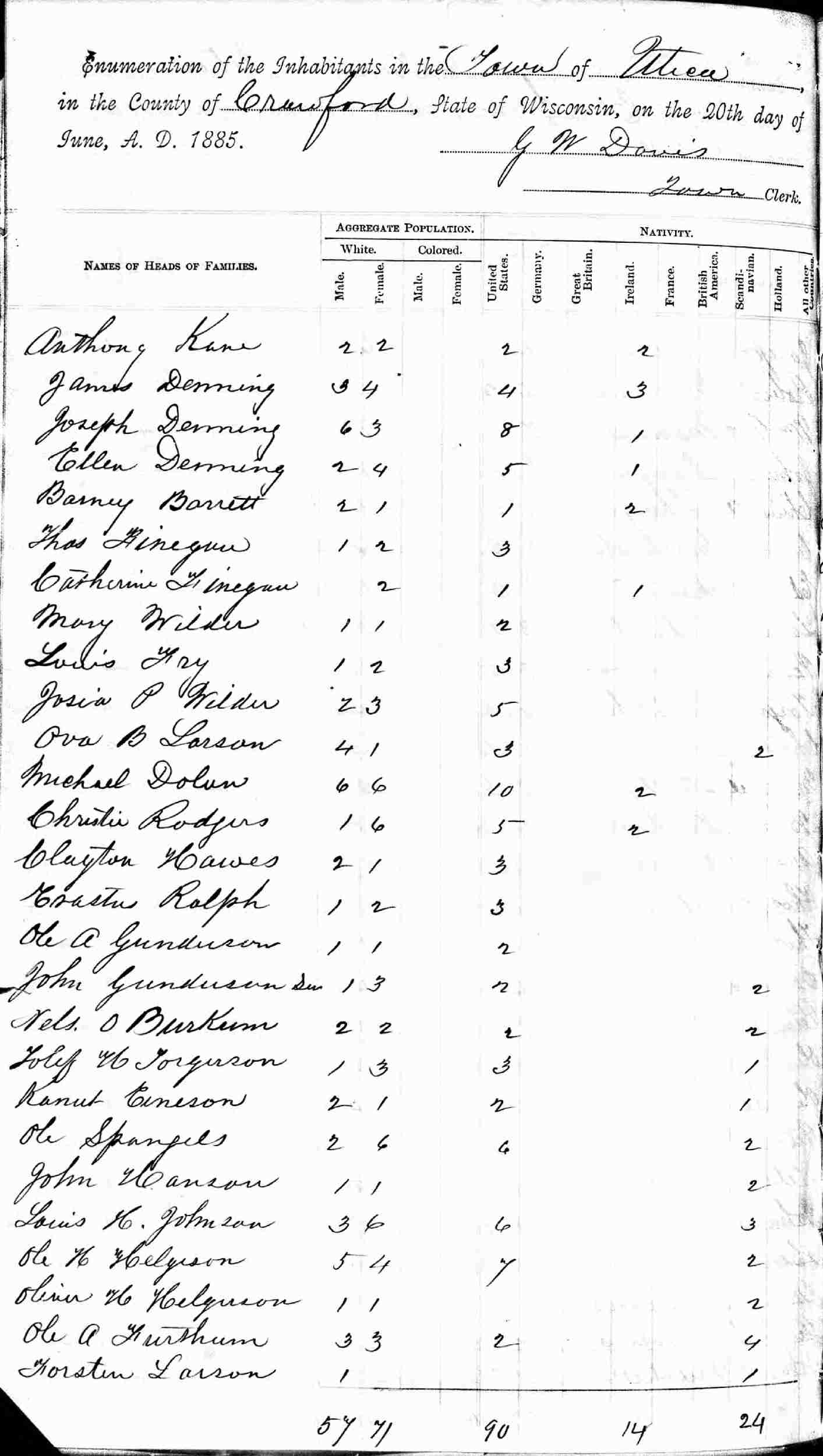 1885 Wisconsin State Census