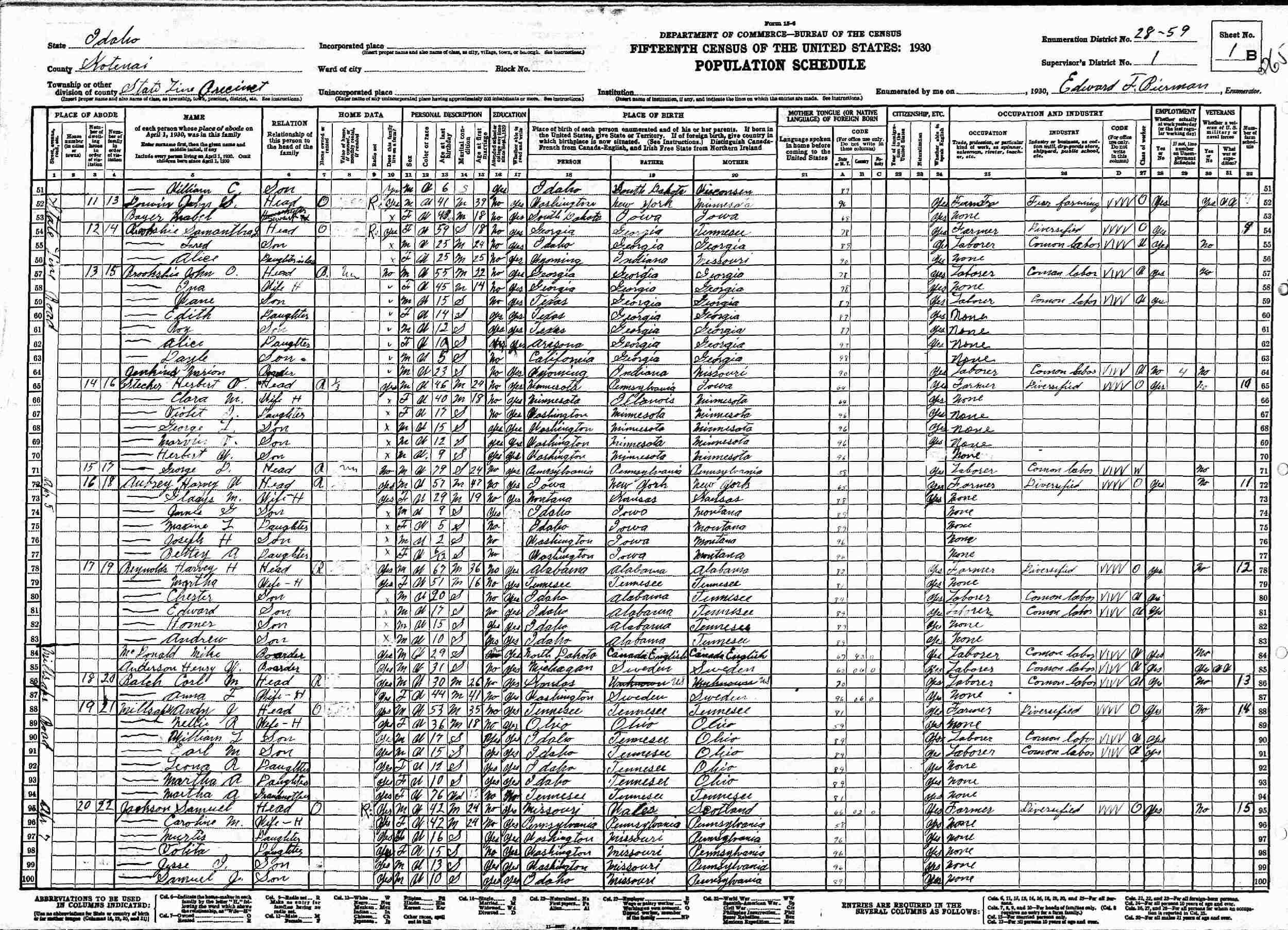 1930 - Millsaps Road, Supervisor's District 1, Enumeration District 28-59, State Line Precinct, Kootenai County, Idaho.