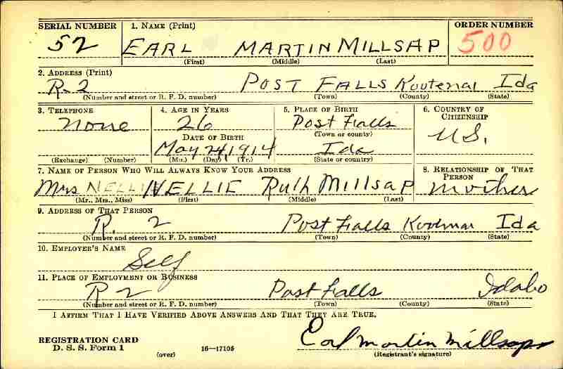 Born: May 25, 1914 in Post Falls, Kootenai County, Idaho.